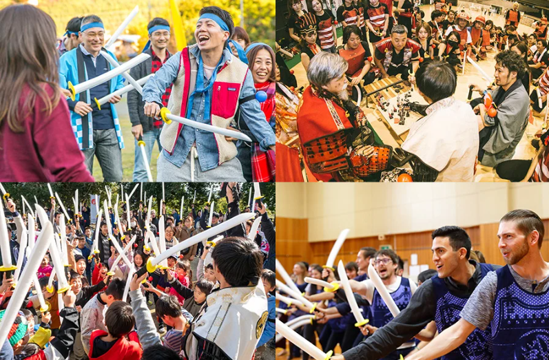 ・SAMURAI BATTLE / Chanbara Battle: Using foam swords to tag a ball on an opponent’s arm, this activity emphasizes strategy over strength. Pre-game “war councils” or strategy meetings are vital for analyzing the opposition and deploying tactics.