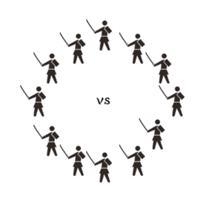SAMURAI BATTLE / Chanbara Battle is a strategic game where ideas surface in open discussions.